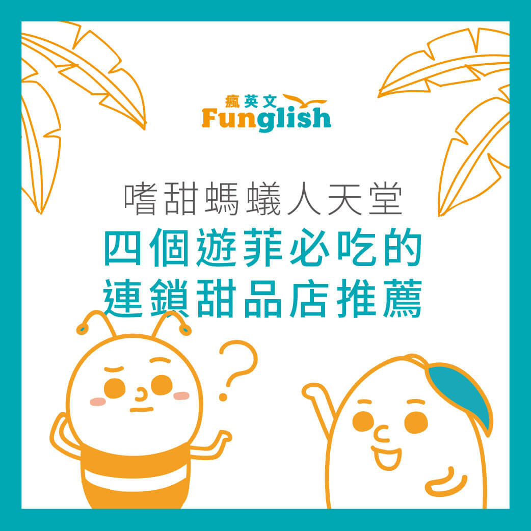 菲律賓人的口味就是嗜甜、喜歡油炸物,尤其又受到西式飲食的影響,每個商場都可以看到滿滿的甜品店、速食店、蛋糕麵包店,如果喜歡這種口味的~恭喜你來對地方啦!瘋英文今天就來介紹幾個菲律賓最常見的連鎖甜品店,究竟有什麼必吃品項?價格又是什麼價位呢?通通會整理在這篇文章。