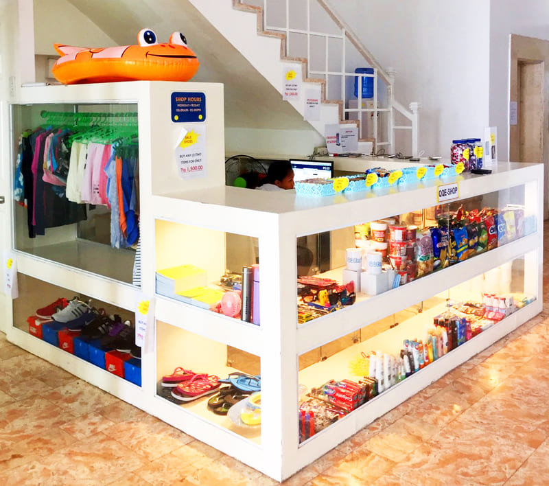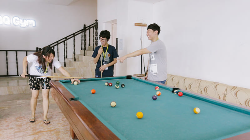 WIFI、餐廳、自習室、健身房、游泳池、商店、校內海灘區、撞球區、桌球區、醫務室、空中花園休息區